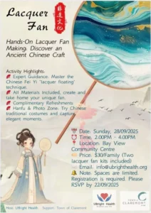 一扇清风,一缕非遗。漆扇摇转间,传统之美在指尖绚烂绽放。在中秋和国庆来临之际, 由UBright Health倾情主办,Town of Claremont 鼎力支持的中秋非遗手作,让每个人亲手定制了属于自己的一把美扇 #UBrightHealth #Claremont #中国非遗文化